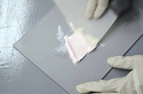 (8)將所有攪拌好的原子灰全部舀起,以方便刮涂。