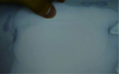 (7)如此重復(fù)地拌和,在這過程中注意觀察混合物顏色的均勻程度,直到原子灰充分拌和。如圖2-39所示。