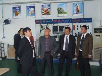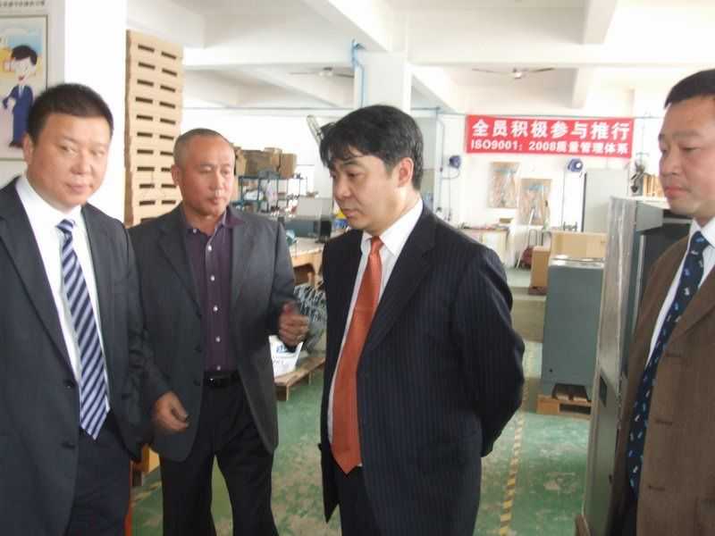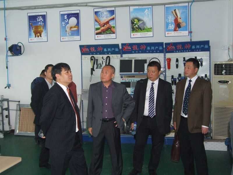 參觀生產(chǎn)部 (右一 龍神彭副總 右三 劉杰處長(zhǎng) 左三 龍神彭總 左一 龍神蘇副總)領(lǐng)導(dǎo)合影