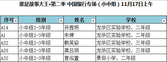 “誰是故事大王 ·第二季”深圳市復(fù)賽晉級(jí)名單